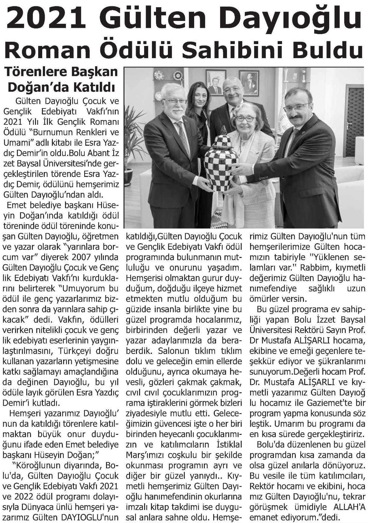 2021 Gülten Dayıoğlu Roman Ödülü Sahibini Buldu.