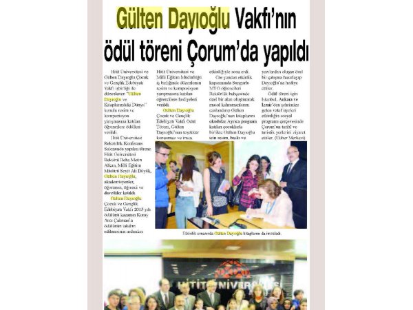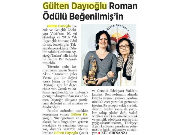Gülten Dayıoğlu Çocuk ve Gençlik Edebiyatı Vakfı 2015 YILI ÇOCUK ROMANI ÖDÜLÜ’NÜ K...