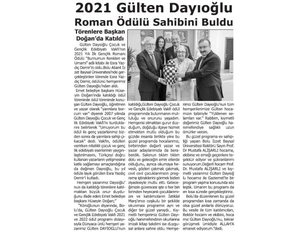 Gülten DayıoğluÇocuk ve Gençlik Edebiyatı Vakfı2014 YILI İLK GENÇLİK ROMANIÖDÜLÜ’NÜ KAZANAN BELLİ OL...