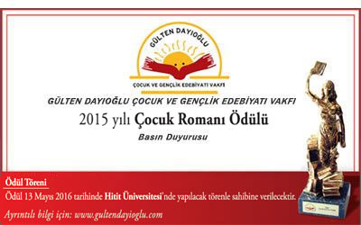 Gülten Dayıoğlu Çocuk ve Gençlik Edebiyatı Vakfı, 2016 yılında ‘’İLKGENÇLİK ROMANI’’ dalında Ödül verecektir.